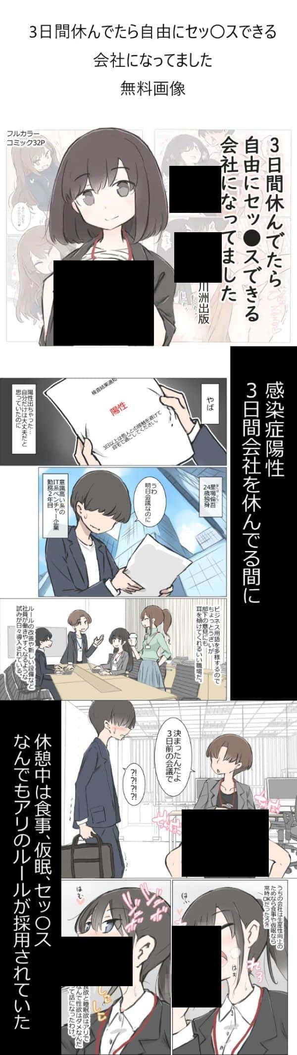 3日間休んでたら自由にセッ〇スできる会社になってましたの無料画像