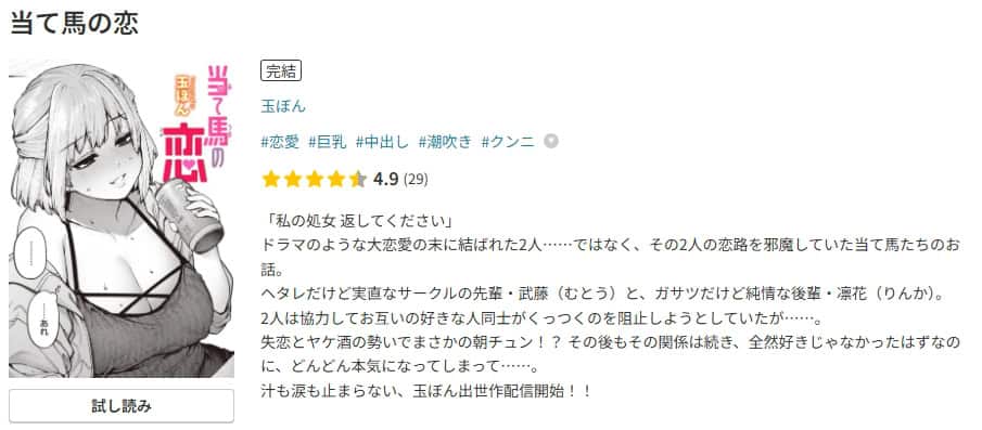 『当て馬の恋』は成人向け作品として販売されている漫画で、いくつかのサイトから読むことができます。