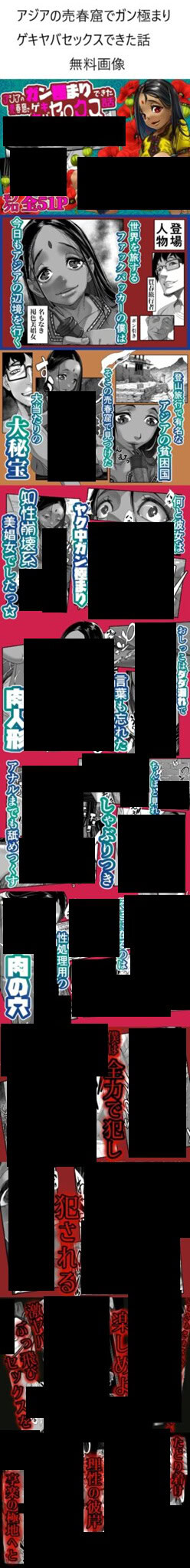 成人指定作品である『アジアの売春窟でガン極まりゲキヤバセックスできた話』について、本記事では内容や描写を解説するのではなく、公式サイトが配布しているサンプル画像をメインに取り上げています。