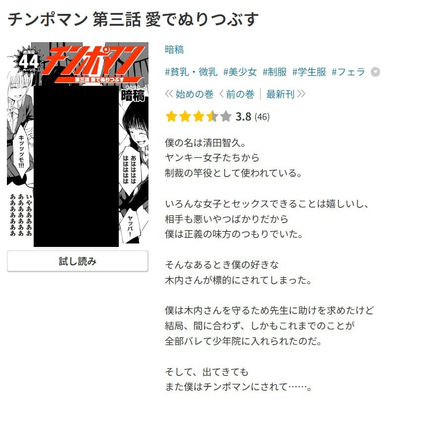 『チンポマン 第三話 愛でぬりつぶす』は成人向け作品として販売されている漫画で、いくつかのサイトから読むことができます。