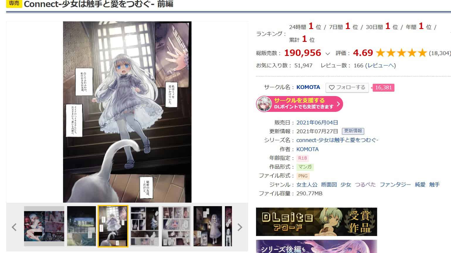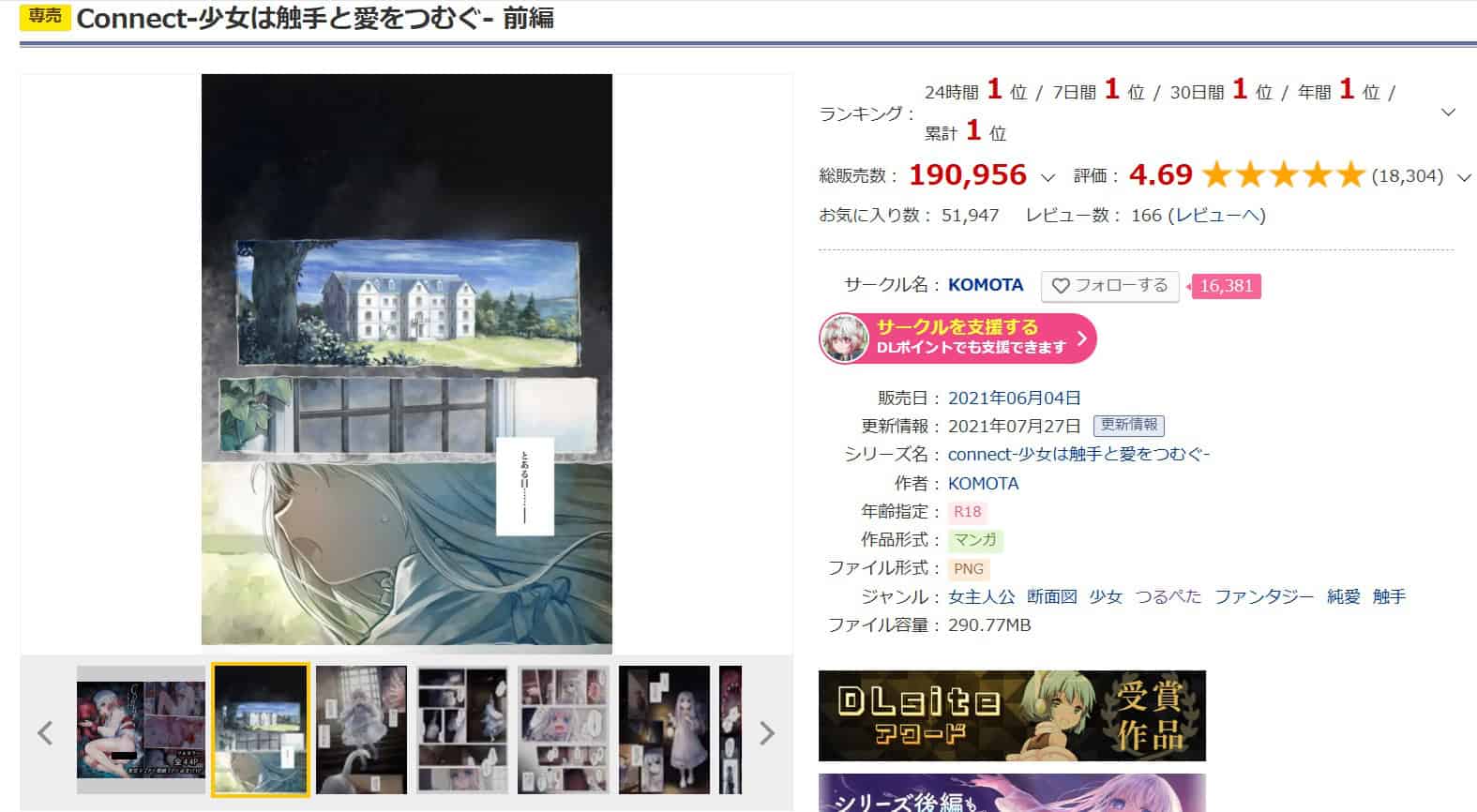 『Connect-少女は触手と愛をつむぐ- 前編』は成人向けとして販売されている公式の漫画作品です。