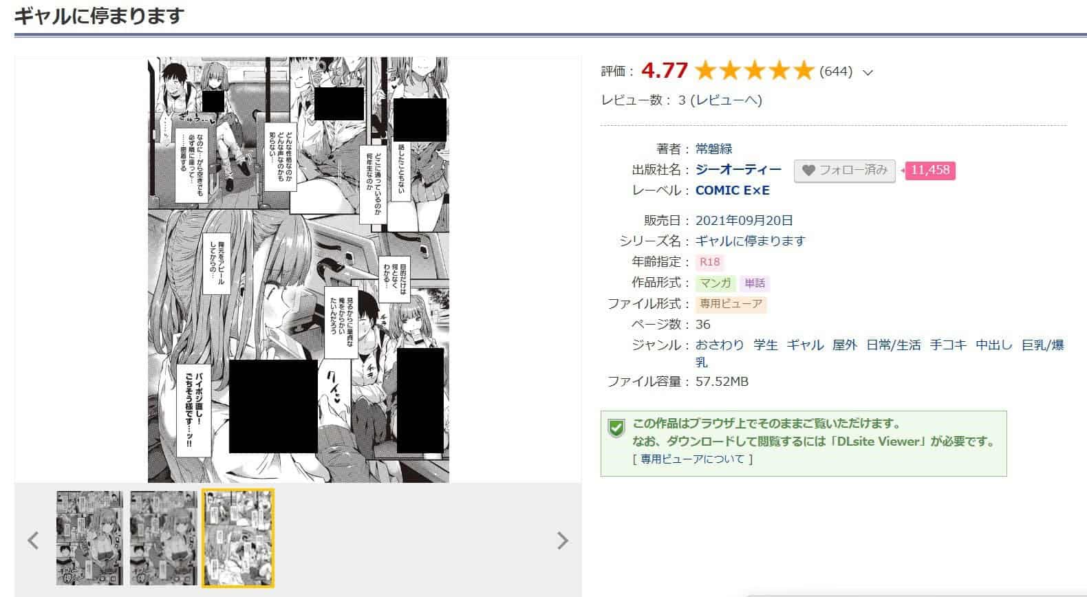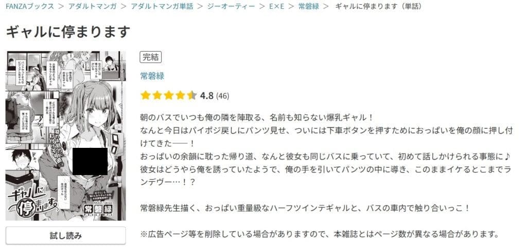 『ギャルに停まります』は成人向けとして提供されている商業漫画です。
