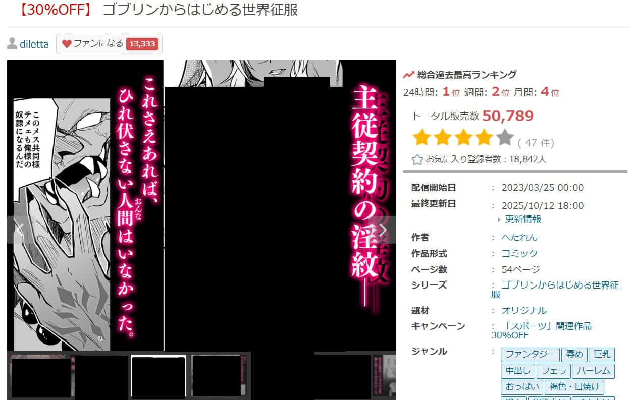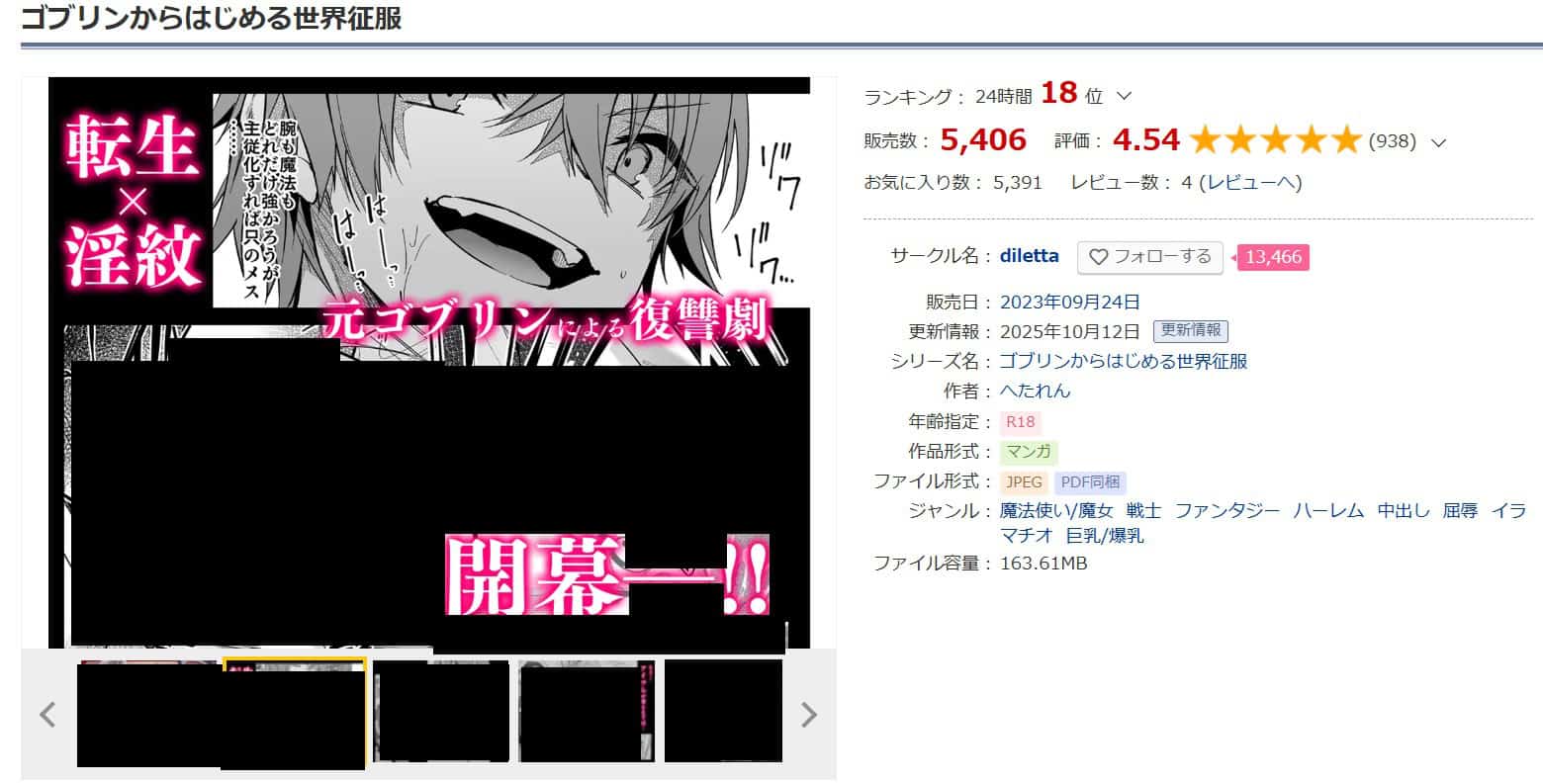 『ゴブリンからはじめる世界征服』は成人向けコンテンツとして正式に販売されている漫画です。