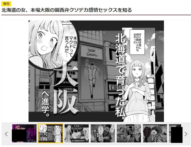 『北海道の女、本場大阪の関西弁クソデカ感情セックスを知る』は成人向け作品として販売されている漫画で、いくつかのサイトから読むことができます。