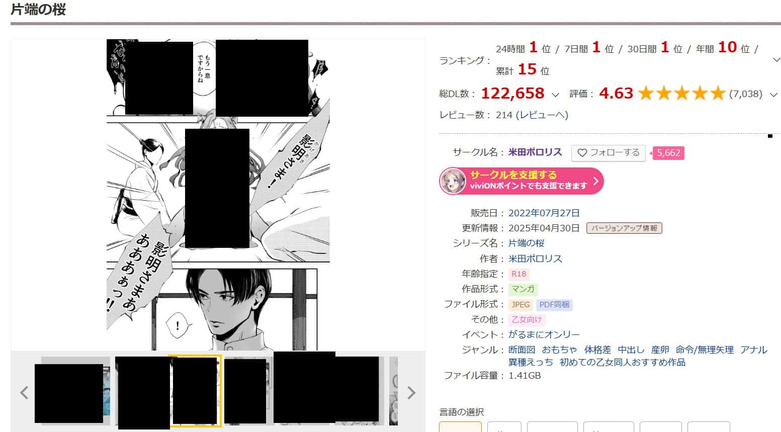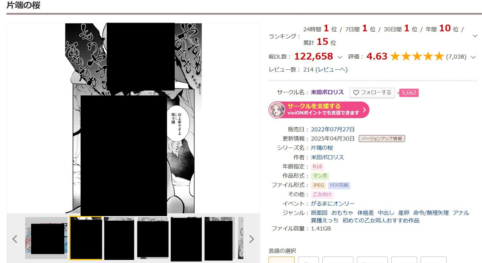 『片端の桜』は成人向けの漫画作品として正式に販売されています。