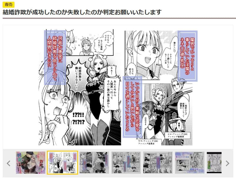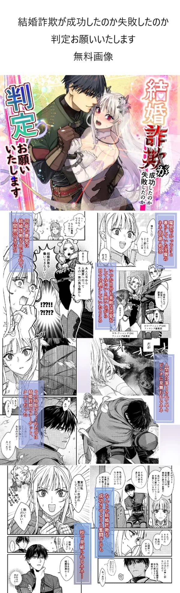 『結婚詐欺が成功したのか失敗したのか判定お願いいたします』は成人向け作品として販売されている漫画で、いくつかのサイトから読むことができます。