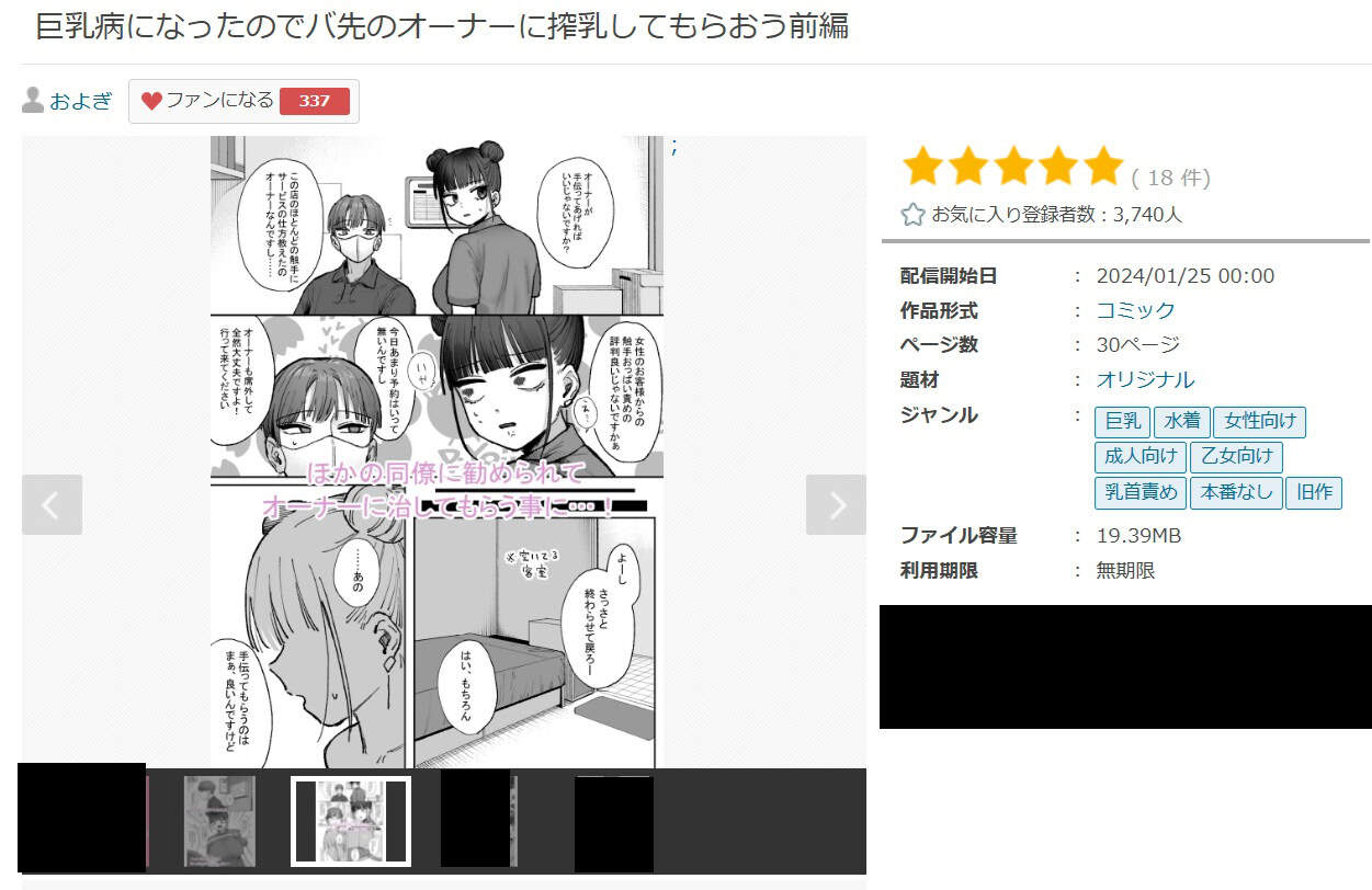 『巨乳病になったのでバ先のオーナーに搾乳してもらおう』は成人向け作品として販売されている漫画で、いくつかのサイトから読むことができます。