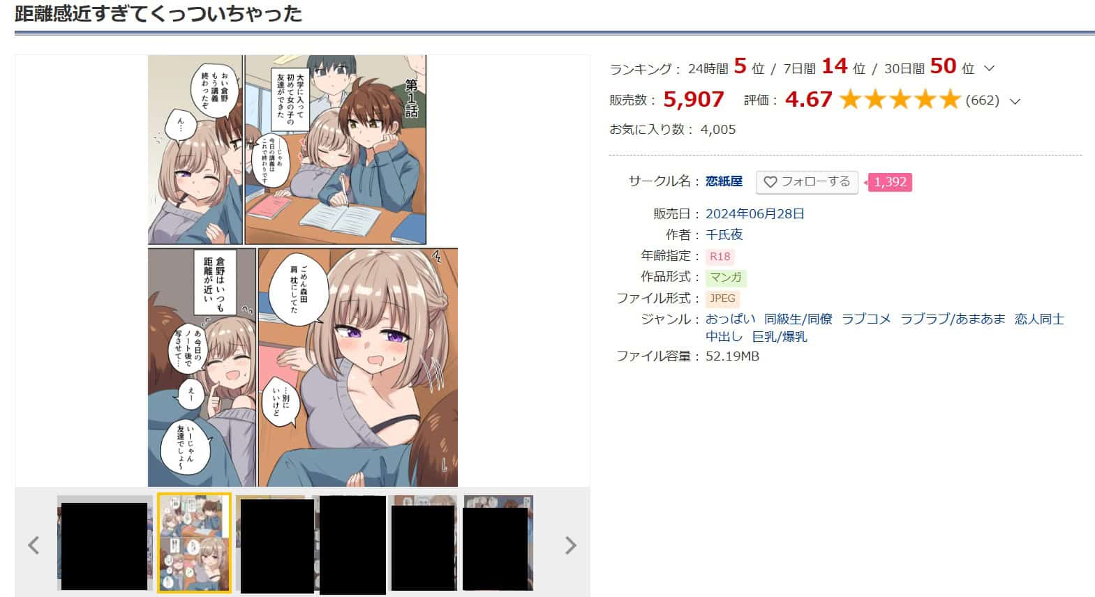 『距離感近すぎてくっついちゃった』は成人向け作品として流通していますが、ここではその内容や描写には触れずに、公式に提供されているサンプル画像を中心にまとめています。