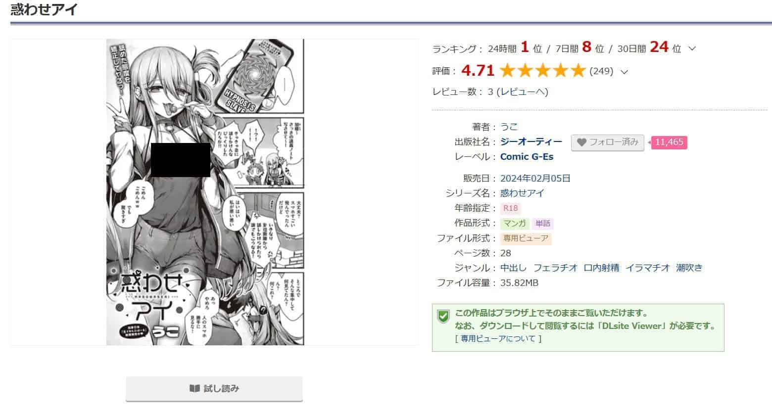 『惑わせアイ』は成人向け作品として販売されている漫画で、いくつかのサイトから読むことができます。