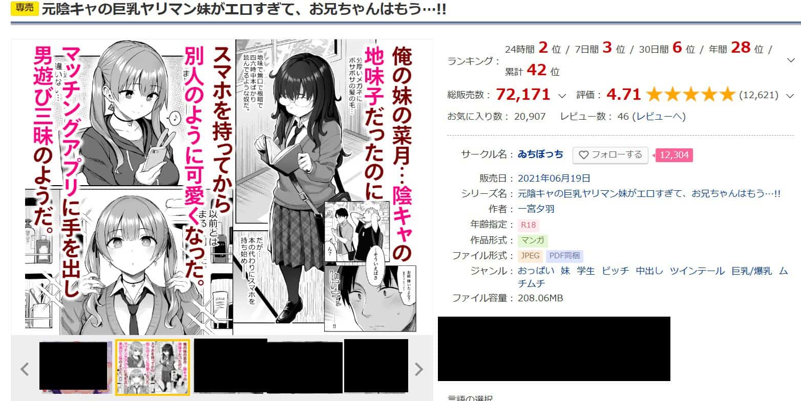 『元陰キャの巨乳ヤリマン妹がエロすぎて、お兄ちゃんはもう…!!』は成人向け向けに正式に販売されている漫画です。