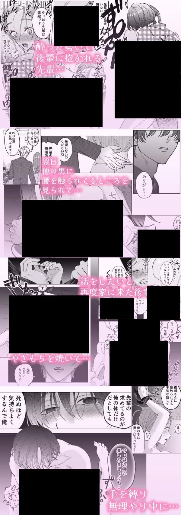 体調を気遣った別の後輩に腰を抱かれる主人公を見た榊くんに、その夜自宅で腕を縛られて—…