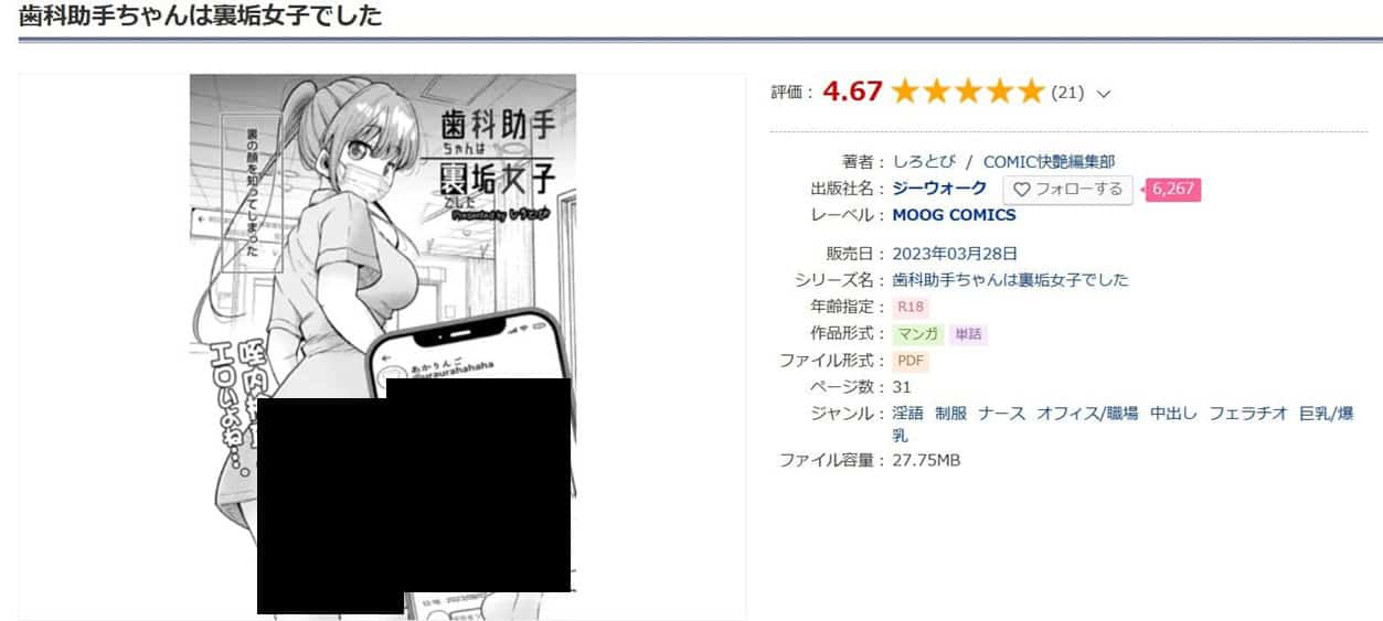 『歯科助手ちゃんは裏垢女子でした』は大人向けに制作された商業漫画です。
