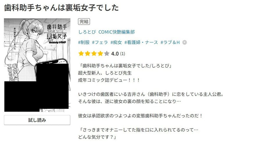 『歯科助手ちゃんは裏垢女子でした』は成人向け作品として販売されている漫画で、いくつかのサイトから読むことができます。
