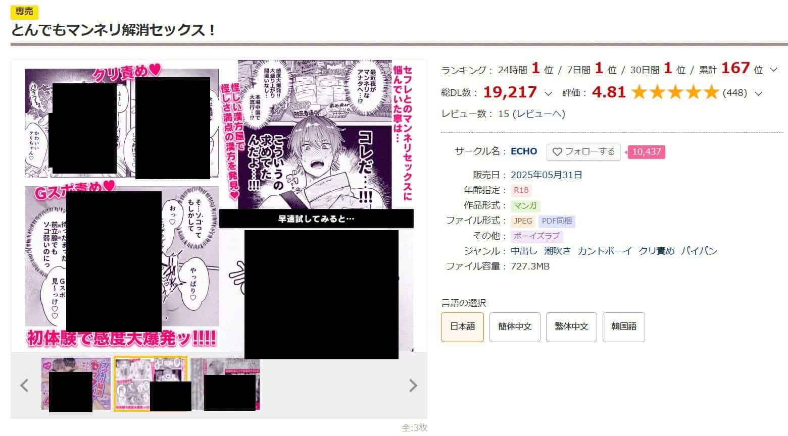 ECHOのオナニー作品でサークルを知って2作目の購入です