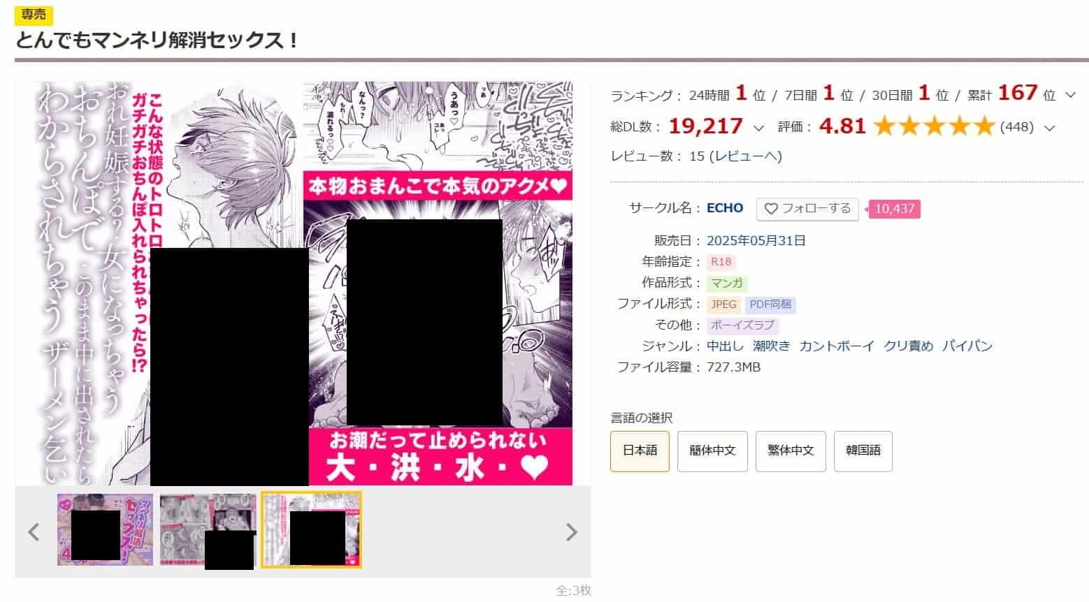 黒塗りやモザイク無しのサンプルはDLsiteの販売ページで見ることが可能です。