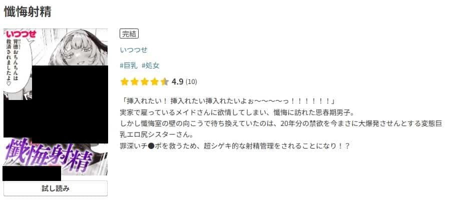 『懺悔射精』は成人向け作品として販売されている漫画で、いくつかのサイトから読むことができます。